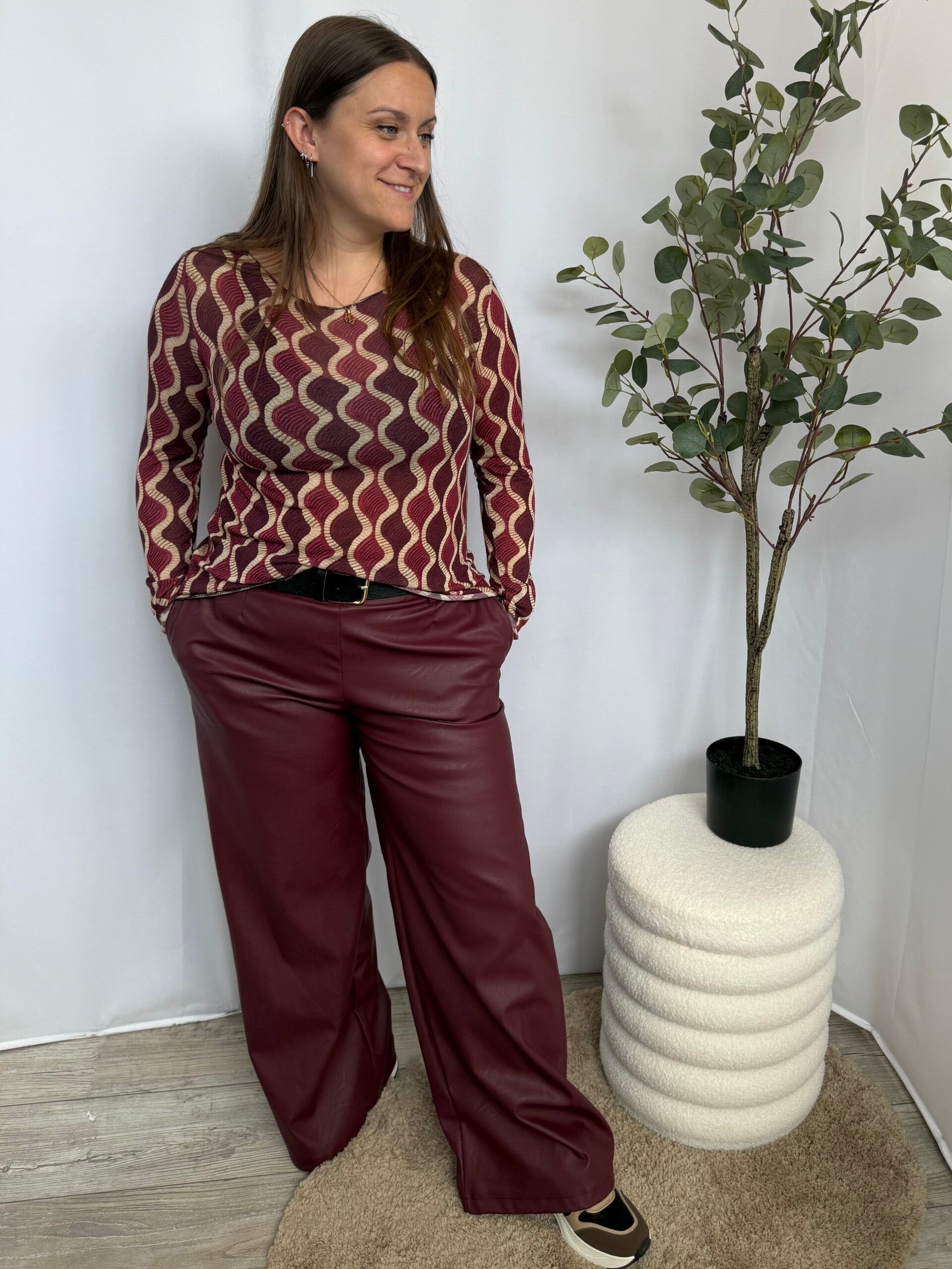 Jeans: Wide leg Leatherlook Bordeaux (one size)
