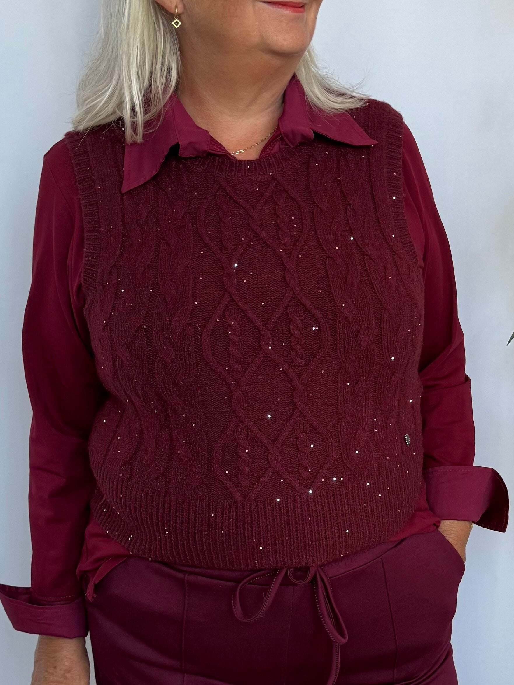 Zacht gebreid gilet met een vleugje stretch, warm en comfortabel dankzij de mix van acryl en polyamide, en subtiel glinsterend door de ingeweven details.