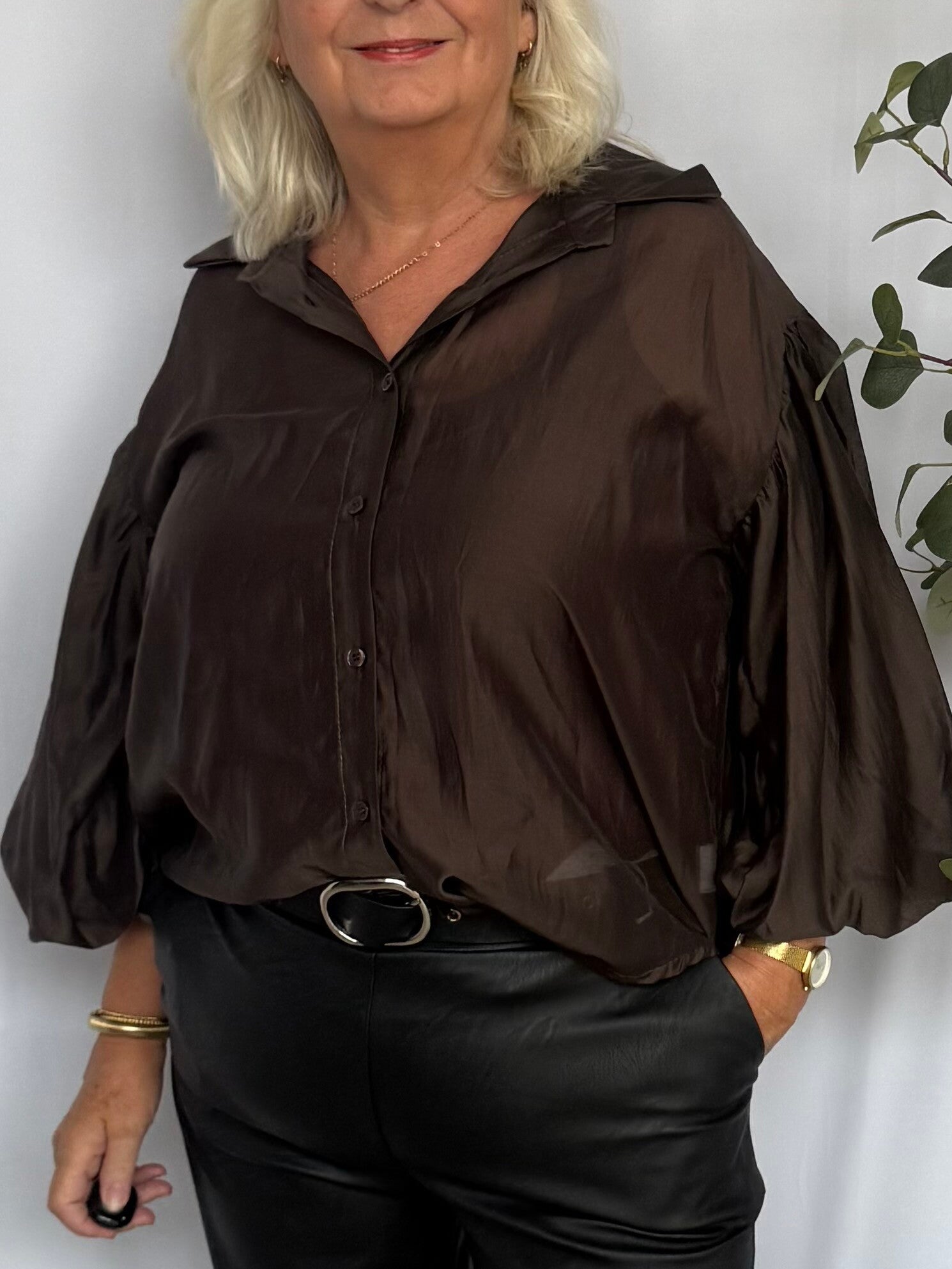 Blouse: Pofmouw Bruin
