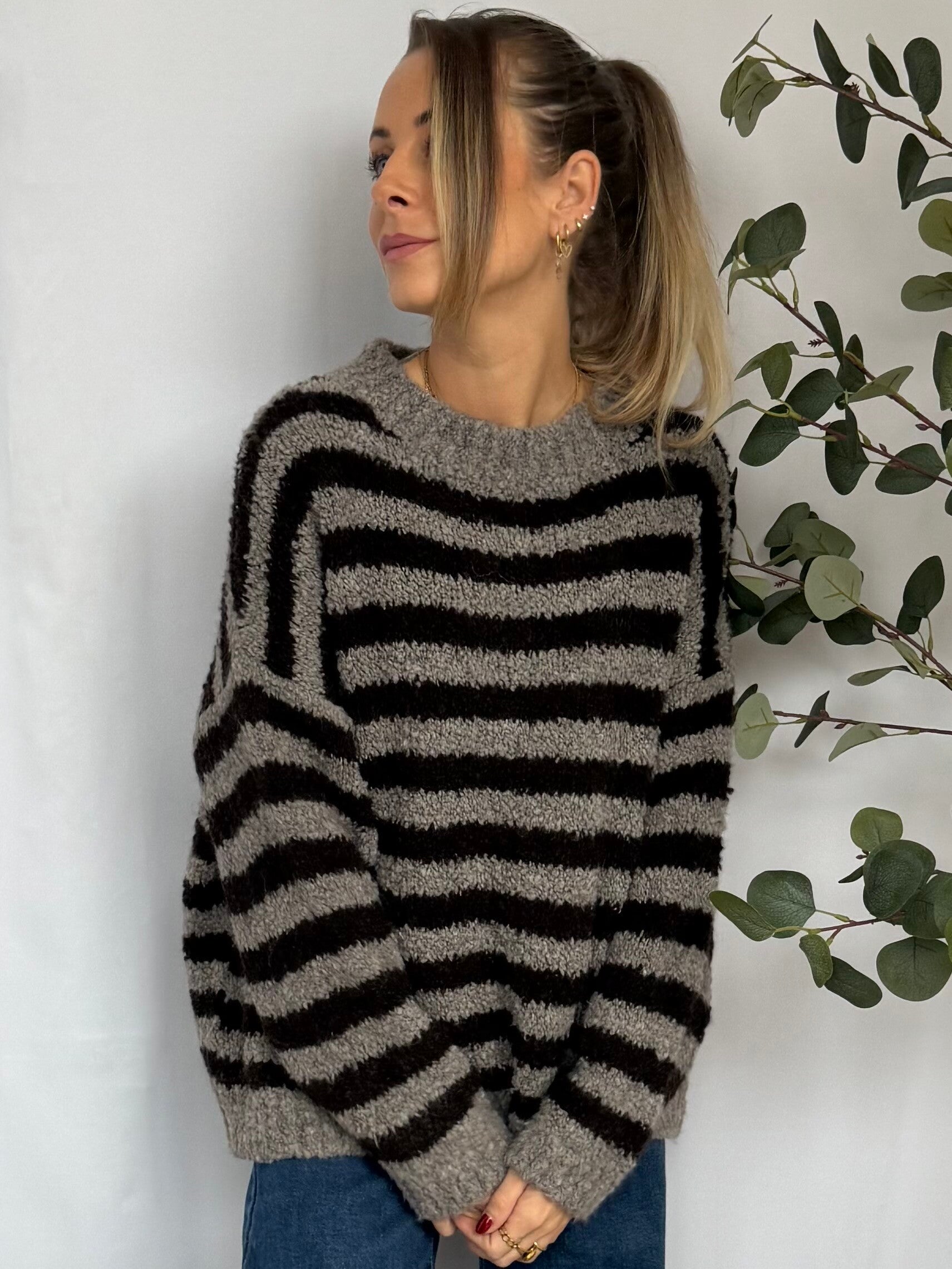 Trui: Streep Grijs/Bruin