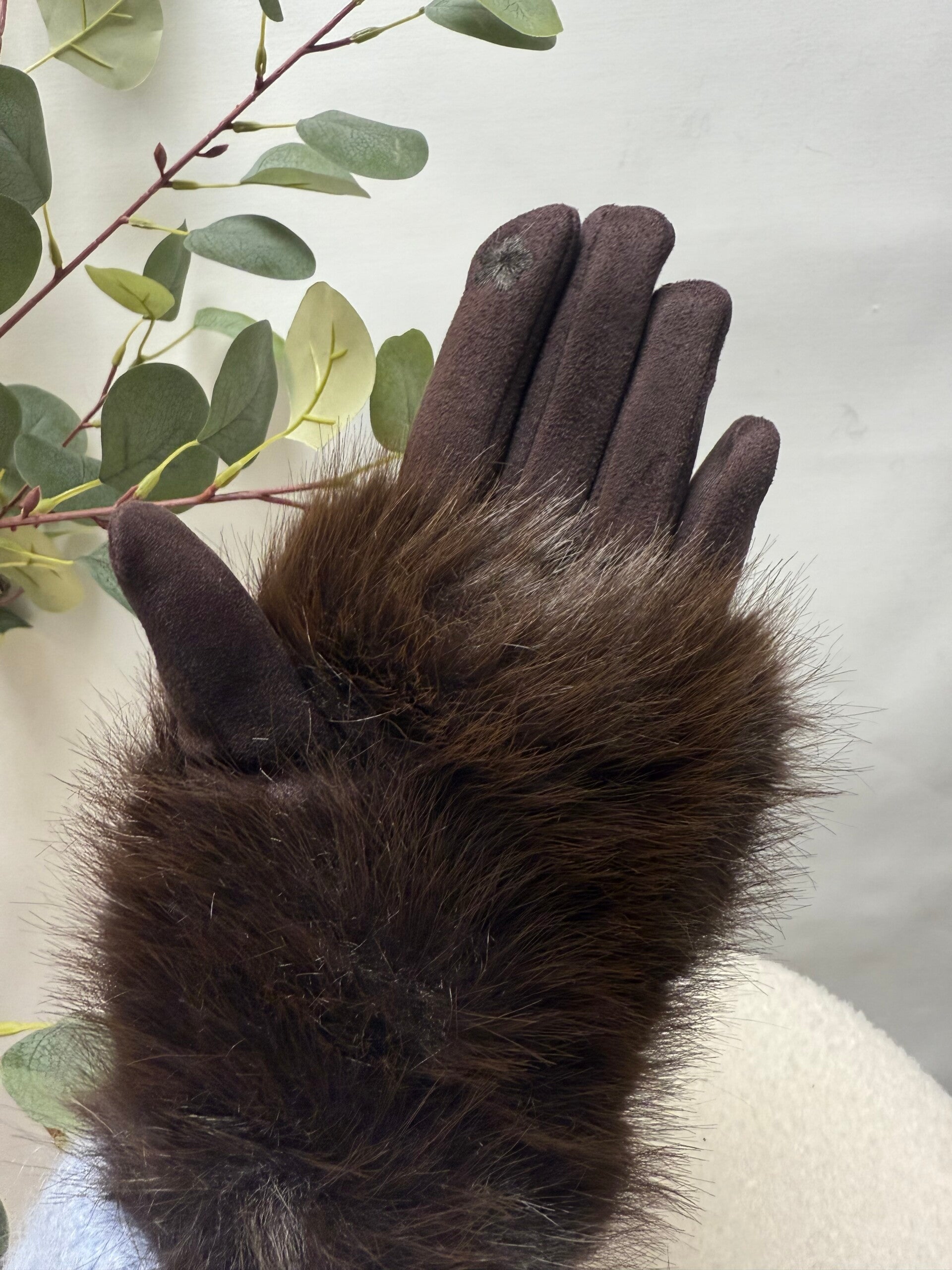 Warme en luxe handschoenen met een fluffy faux fur bovenkant voor een chique winterlook. De onderzijde heeft een zachte, comfortabele stretch die mooi aansluit om de hand. Dankzij het touchscreen stukje op de wijsvinger kun je je telefoon blijven bedienen zonder je handschoenen uit te doen.