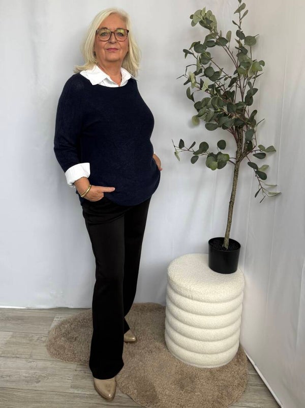 Deze zachte knit voelt soepel en comfortabel aan op de huid. De trui heeft een fijne pasvorm met lichte stretch waardoor hij mooi meevormt en niet tekent. Ideaal als dagelijkse basic die je gemakkelijk combineert met jeans, rok of gilet. Een musthave voor het nieuwe seizoen.