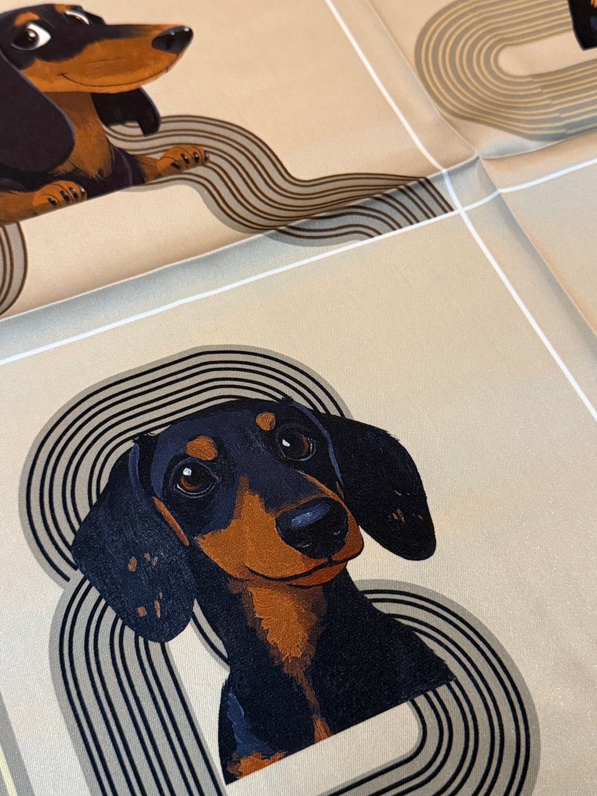 Maak je outfit compleet met deze vrolijke teckel-halsdoek.
