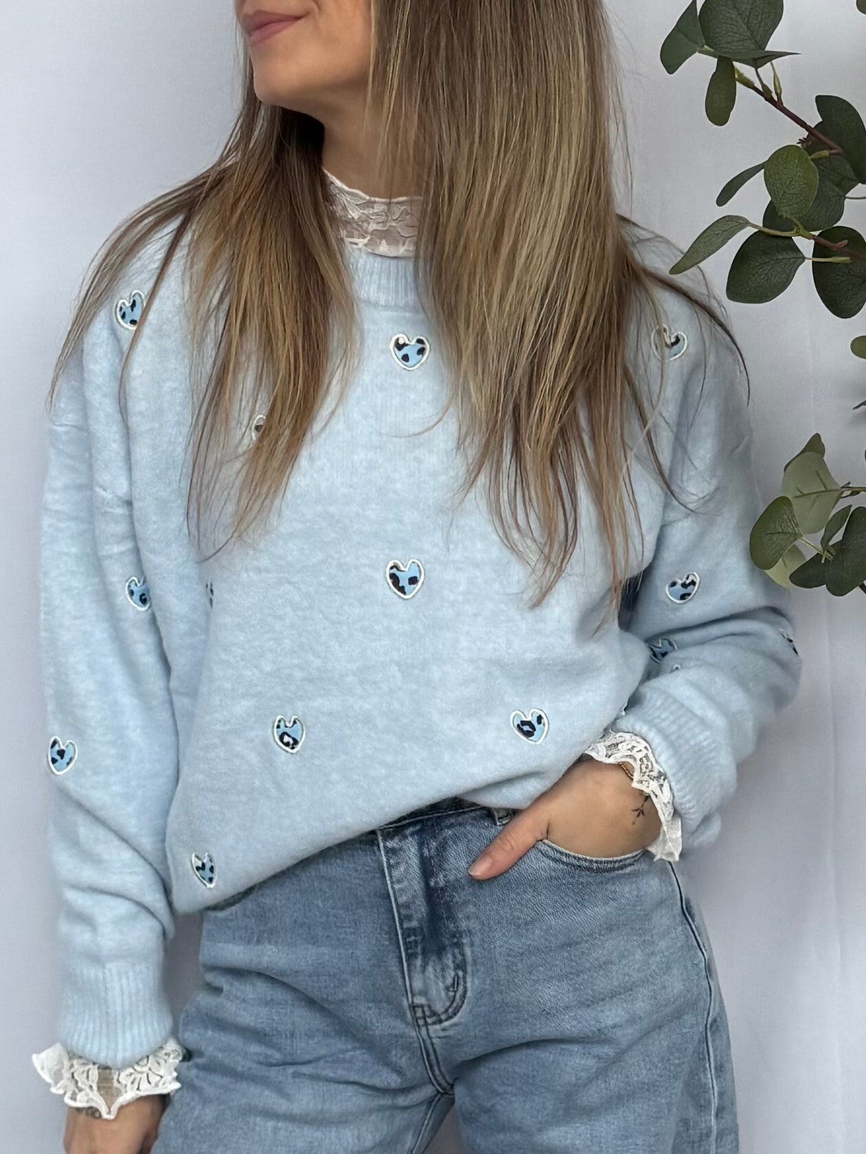 Zachte, comfortabele trui met subtiele hartjesdetails voor een vrouwelijke en speelse uitstraling. Een fijne knit die je makkelijk combineert en prettig draagt. Ook perfect voor nu te dragen met een longsleeve of een kanten longsleeve eronder. Zo creëer je eenvoudig een laagjes-look die niet te warm is.