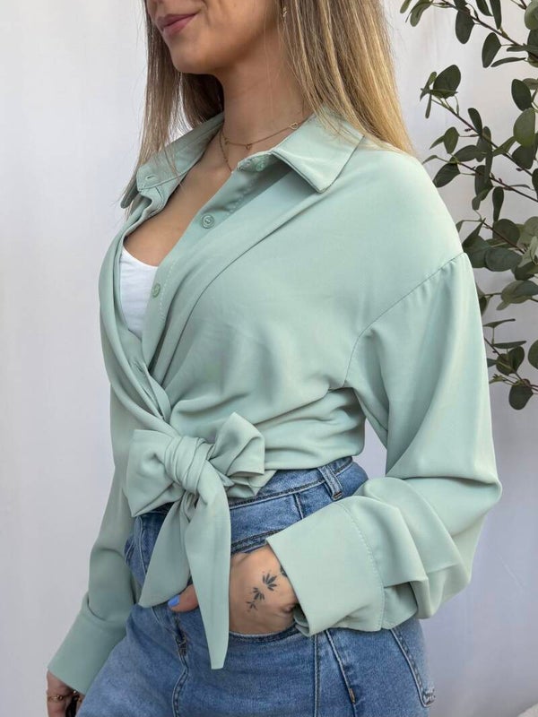Elegante blouse met een overslag en strikdetail aan de voorkant voor een vrouwelijke uitstraling. De soepele stof valt mooi langs het lichaam en maakt deze blouse geschikt voor zowel casual als geklede momenten.