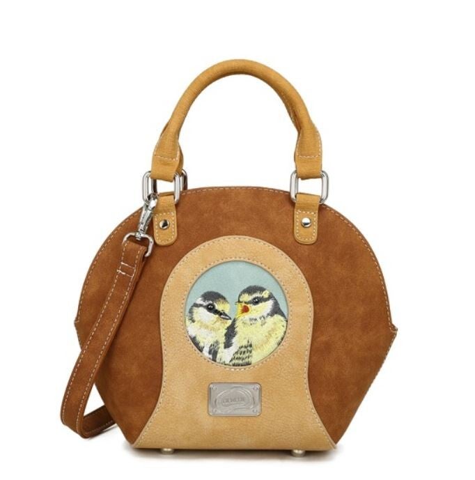 Dankzij de wijde opening zie je in één oogopslag wat erin zit en pak je alles er makkelijk uit. De twee geborduurde vogeltjes aan de voorkant zitten gezellig tegen elkaar aan, alsof de tas hun nestje is dat jij overal mee naartoe neemt.