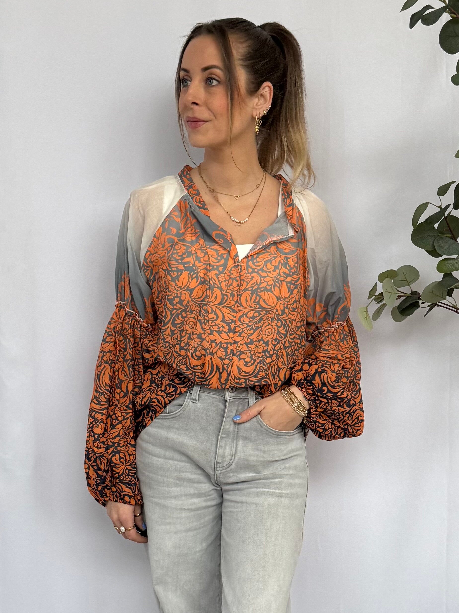 Deze luchtige blouse met zachte bloemenprint is zo’n item dat je er makkelijk bij pakt. De losse pasvorm, het subtiele V-halsje en de pofmouwen geven ‘m een vrouwelijke uitstraling zonder dat hij te netjes wordt. Fijn voor elke dag, maar ook leuk met een sierlijke ketting of blazer.
