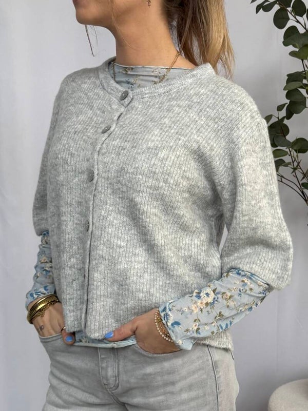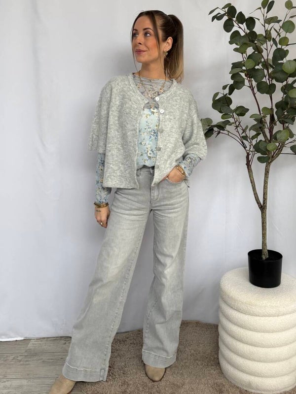 Dit gebreide vest met 3/4de mouw is een heerlijk zacht item met een comfortabele, vrouwelijke uitstraling. De luchtige knit voelt licht aan en draagt prettig, terwijl de knoopsluiting aan de voorzijde zorgt voor een tijdloze look. Perfect om los te dragen of dichtgeknoopt als trui.