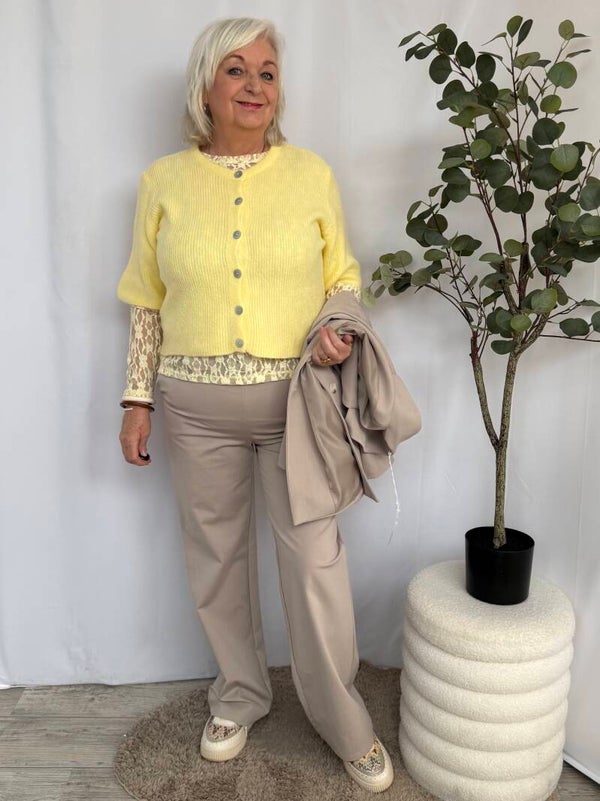 Dit gebreide vest met 3/4de mouw is een heerlijk zacht item met een comfortabele, vrouwelijke uitstraling. De luchtige knit voelt licht aan en draagt prettig, terwijl de knoopsluiting aan de voorzijde zorgt voor een tijdloze look. Perfect om los te dragen of dichtgeknoopt als trui.