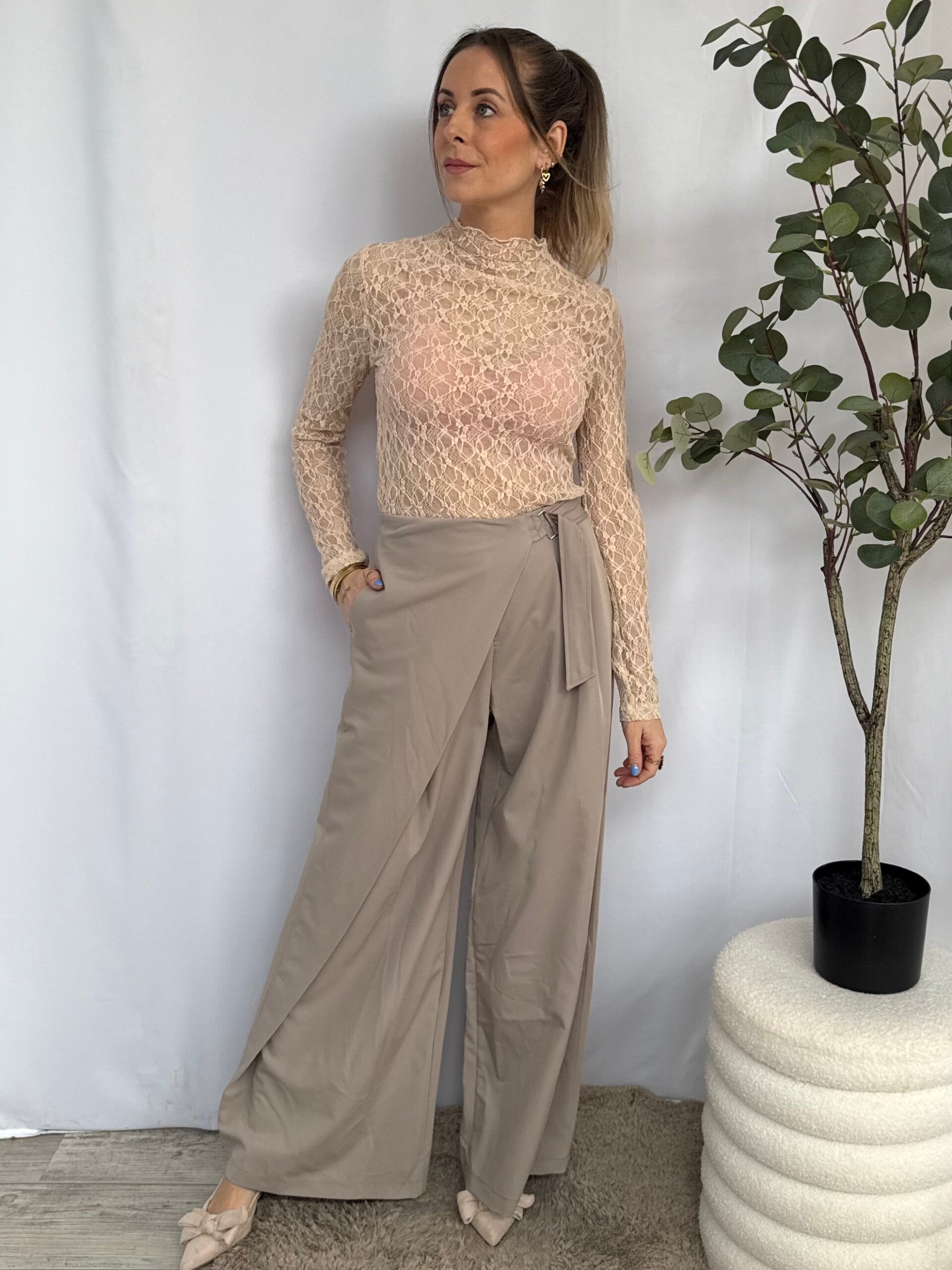 Deze kante top heeft een elegante en verfijnde uitstraling door de mooie kantstructuur. De stof is licht transparant en ideaal om te layeren onder een blazer, jasje of vest, maar ook stijlvol met een topje eronder. Een tijdloos item dat je makkelijk combineert, zowel casual als gekleed.