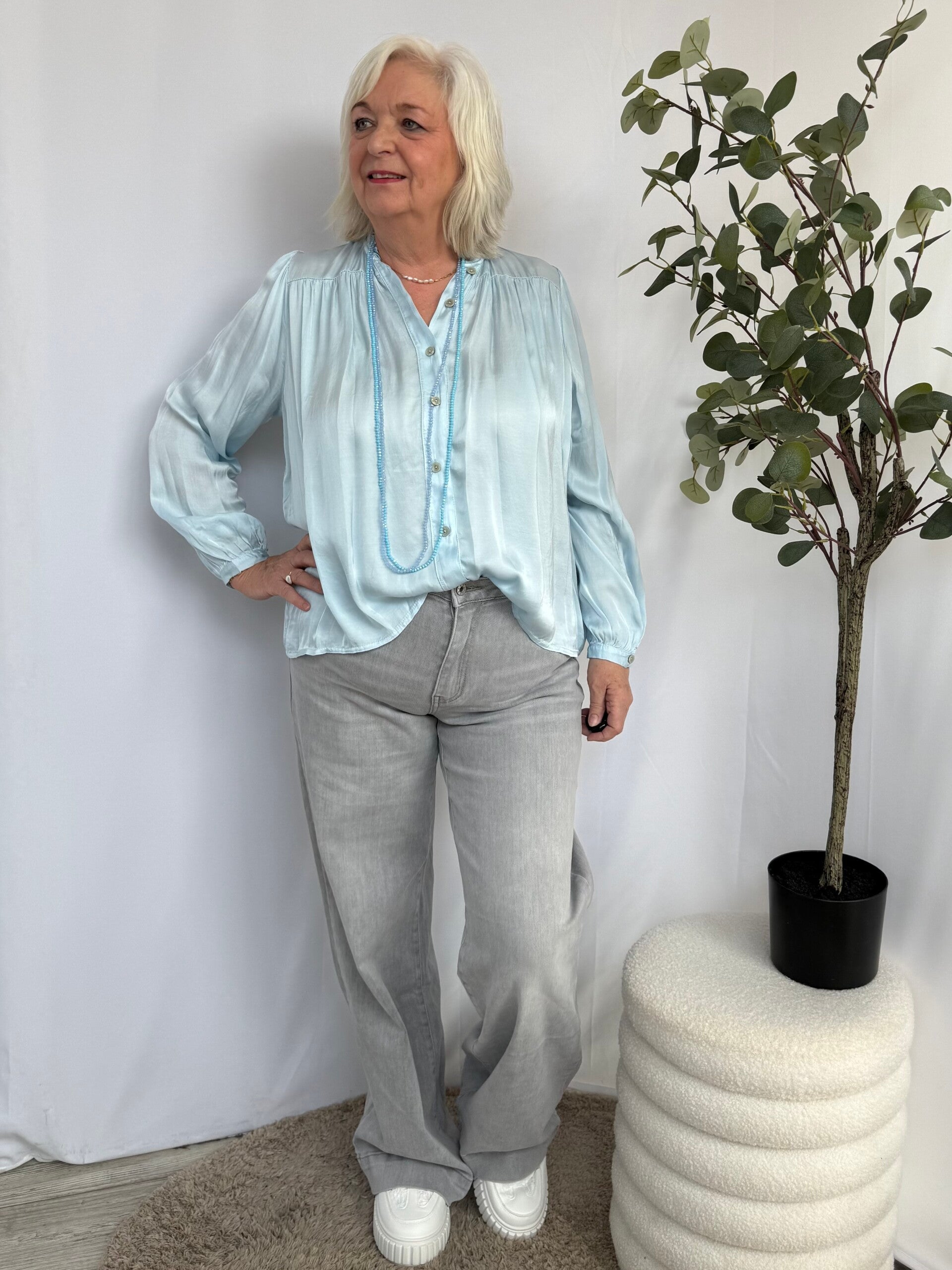 Deze blouse heeft een luxe, soepele uitstraling en valt prachtig langs het lichaam. De subtiele glans en verfijnde details bij de hals geven het item een elegante touch, waardoor je het moeiteloos zowel casual als gekleed kunt dragen.
