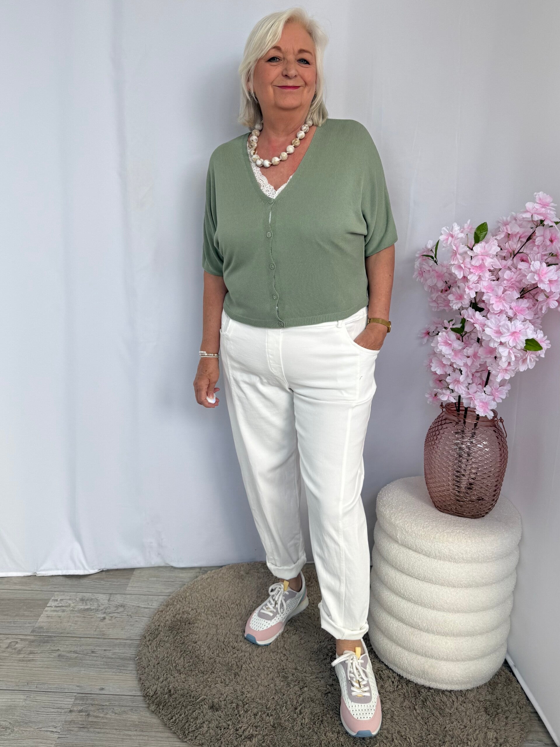 Een fijn en stijlvol vest dat overal bij past. De zachte knit, elegante V-hals en knoopsluiting maken dit item perfect om los te dragen of als extra laagje over een top, jurk of blouse. Een tijdloze basic die je seizoen na seizoen blijft combineren.